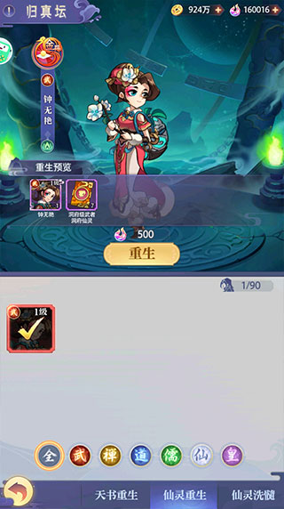 最后角色方面主要是看灵根,前期可以放心培养80-90灵根的仙灵,有更强力的仙灵后可以将之前培养的仙灵免费洗髓和重生,系统将返还消耗的材料,不过后期大家基本都是要养成多个阵容的,不然遇到属性被克制的关卡,是很难通关的。