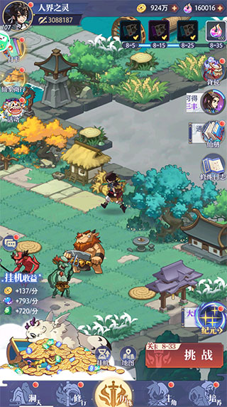 游戏为养成类型的玩法,所以前期最重要的就是资源,角色的等级越高那么伤害自然也就越高。游戏当中挂机资源,主要根据主线关卡的推进进度来决定的,所以每天必须要把主线关卡打到极致。
