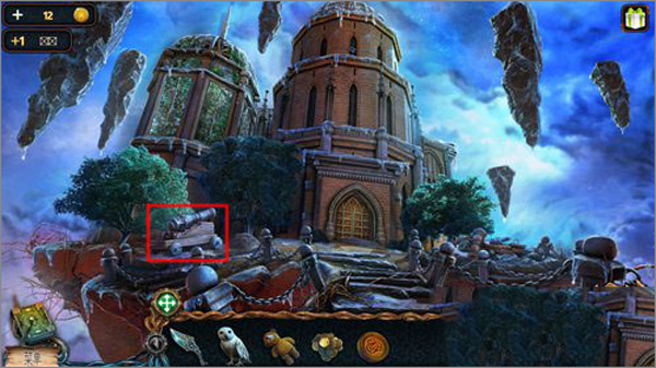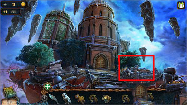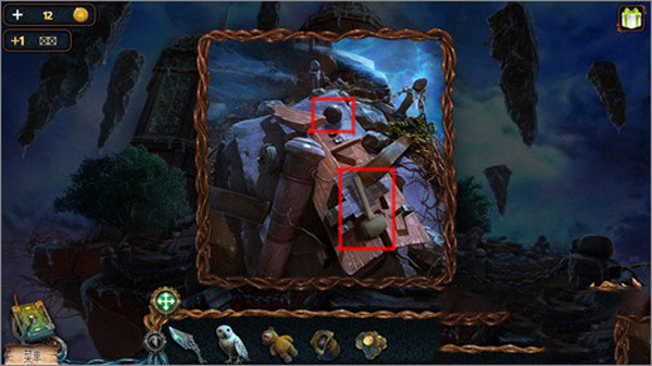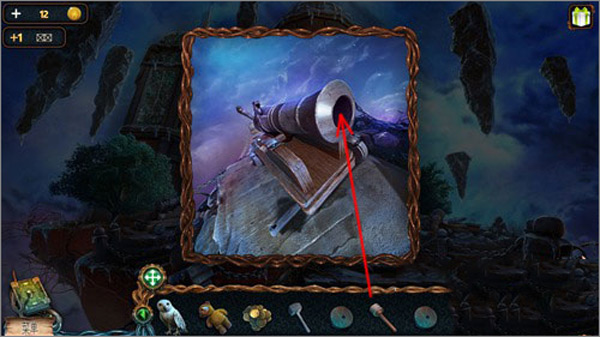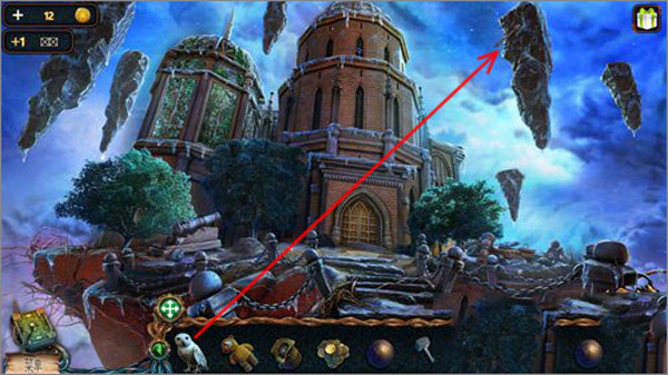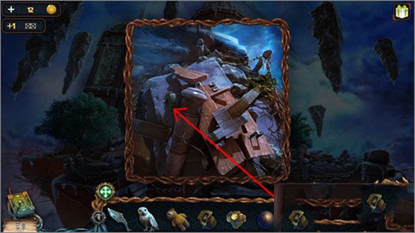 5、点击猫头鹰,再点击右上角悬浮的石头,可以让猫头鹰飞上去将推杆拿下来;