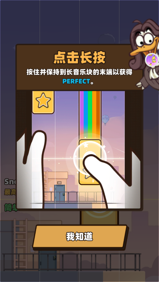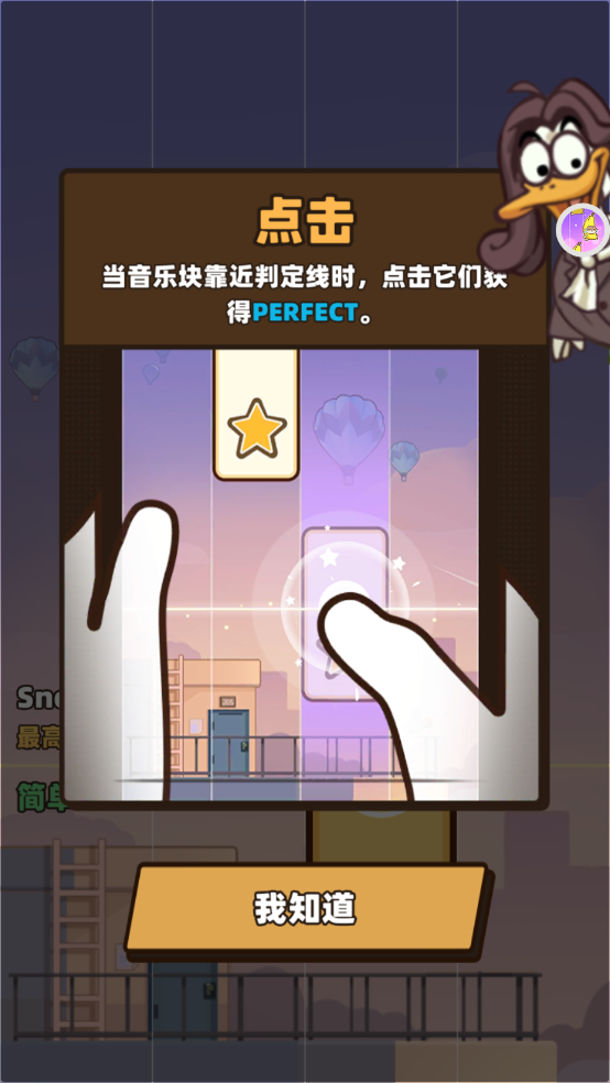 2、随着音乐节奏,会有音符不断落下,熟悉操作在合适时机长按、单击判定线。
