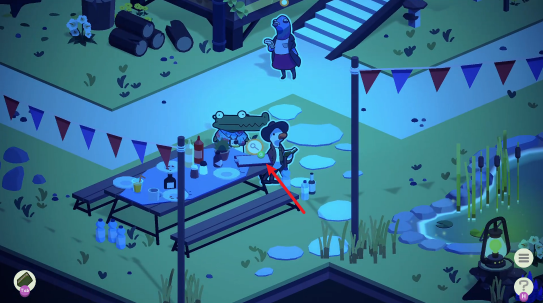 2、来到营地之后就可以展开调查,靠近这样的物品就会出现放大镜的按钮,点击即可调查。