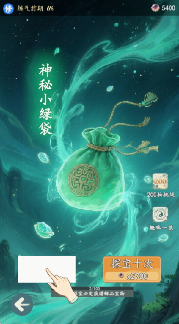 (3)灵气:给功法升级使用的材料!这个不是很重要,因为你有双卡了(无限探宝了)就不会缺这个了