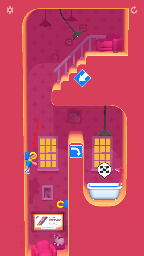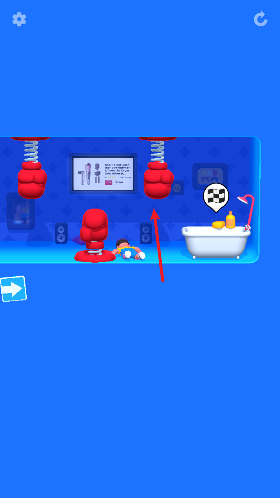 2、关卡的类型非常丰富,例如帮助他进入浴缸当中。