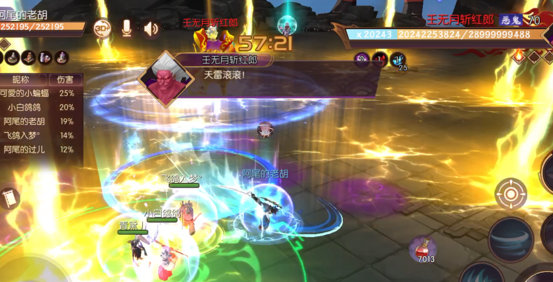 20000血左右,天雷滚滚,大范围落雷,击飞玩家,进入阶段二。