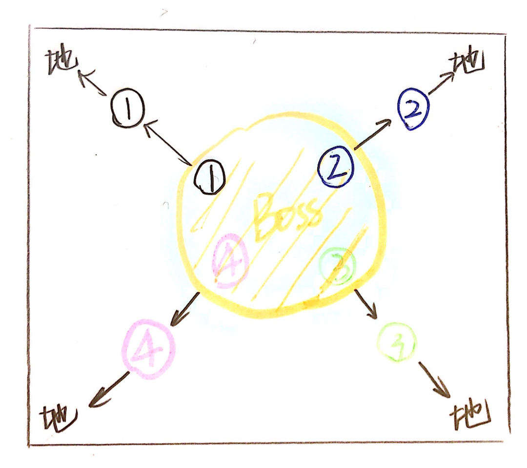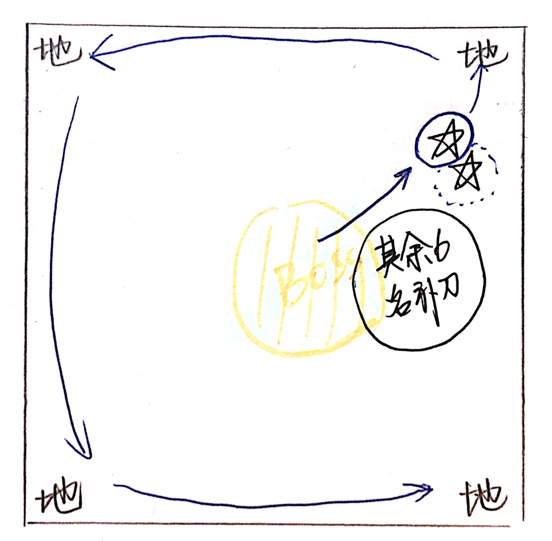 BOSS跳中就开始注意分散开,明确仇恨,仇恨玩家左右走位摆脱剑气,其余队友在BOSS背后输出。