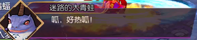 斩红郎召唤周身烈火,让玩家无法近身输出。青蛙们这时候因为太热会吐出之前被冻的寒气(个人猜测),需要玩家配合吸引四角落青蛙的仇恨,瞄准斩红郎射击寒气弹直至火保持熄灭状态,同时注意自己不要阵亡。
