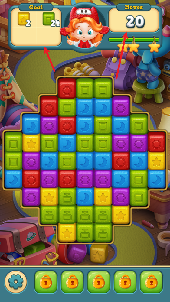 1、开启关卡之后, 可以看到关卡目标和步数限制。