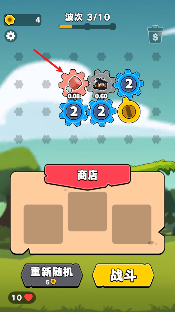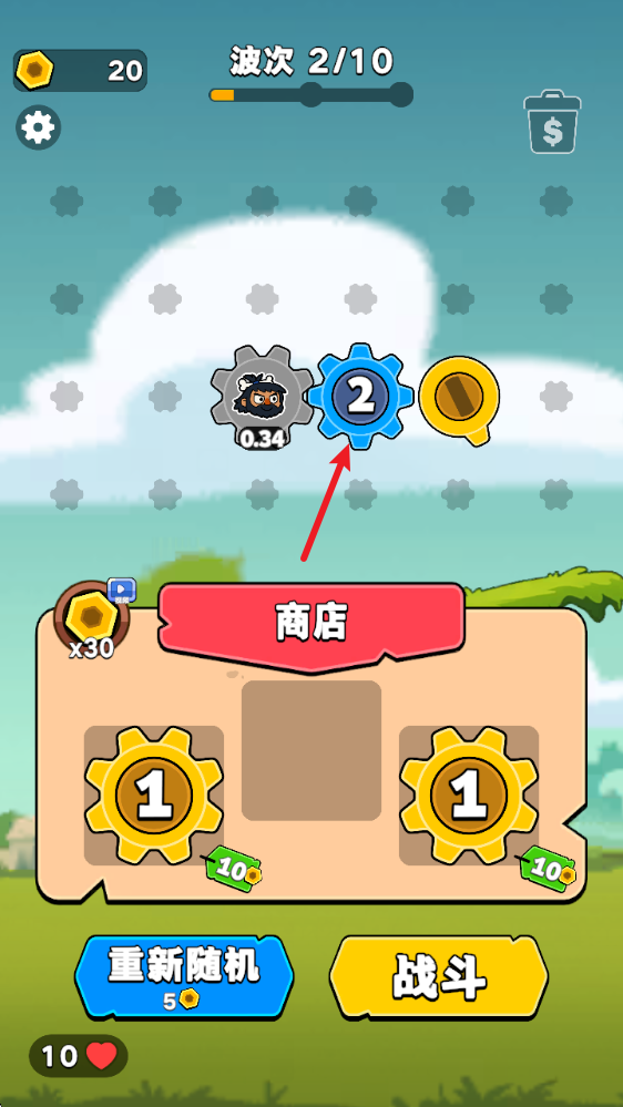 1、游戏中,我们放置齿轮来构筑自己的进攻阵容。