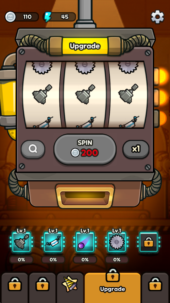 2、机器两侧的小人会自动采矿来获得经验,提升等级后可以获得卡牌提升能力。