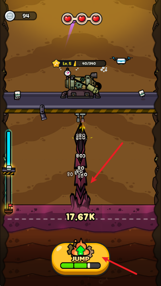 1、游戏中你的机器会自动的攻击底层,向下不断的挖掘。