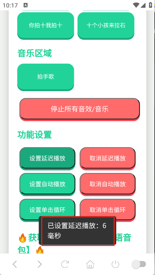 1、点击按钮播放音效或音乐。请确保设备音量适中。