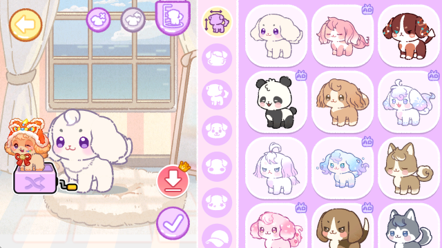 1、装扮系统极为丰富,拥有海量服饰和装饰品,可以随心搭配出独一无二的狗狗造型。