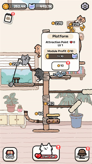 你的第一座猫咪塔已经准备就绪!装饰你的猫咪塔,提升它的魅力值,并收集各种可爱的猫咪!