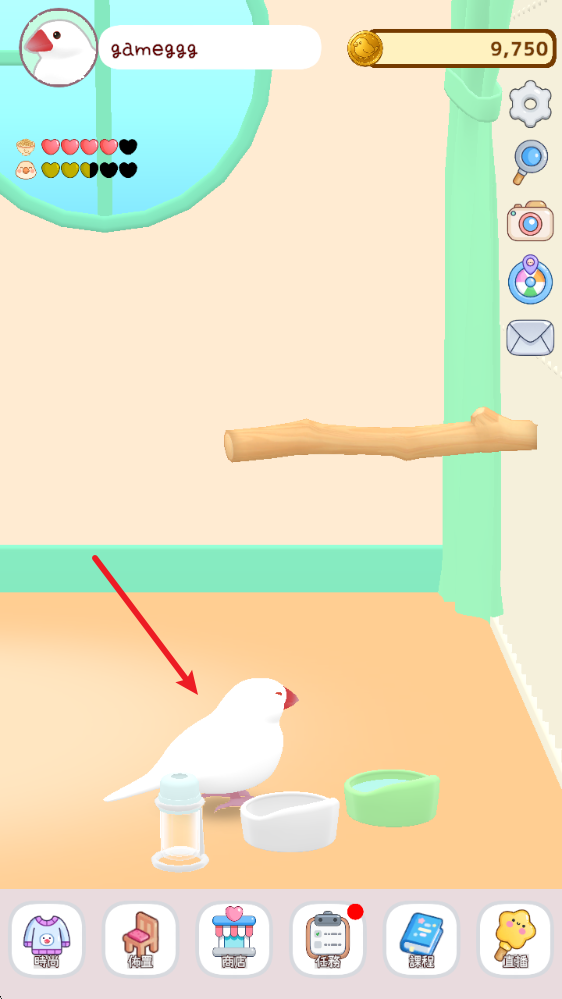 1、进入游戏后,点击小鸟即可和它互动,逗它玩。