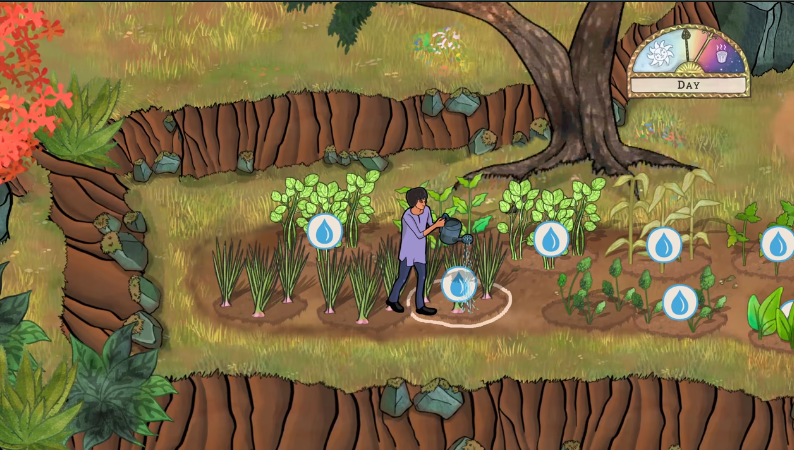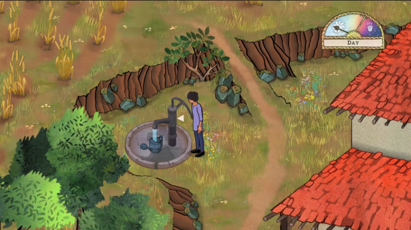 1、玩家需要在固定的时间的段来给植物浇水,在房屋的后面就可以发现井水。