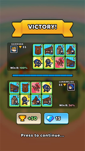 4、召唤小兵摧毁对方的建筑和城堡就可以获得胜利,获胜后可以获得不同的奖励。