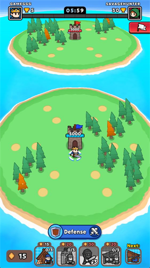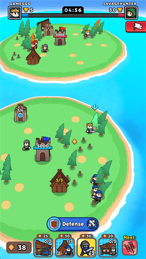 在《岛屿王国》中,你将化身一位岛屿领主,通过砍伐树木收集资源,在通往敌方基地的道路旁建造兵营、防御塔等多样建筑。