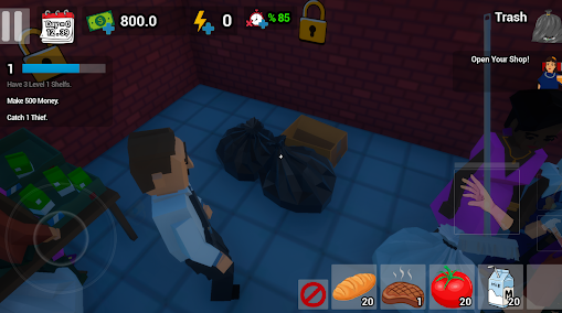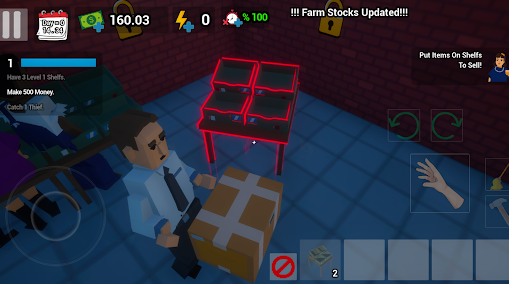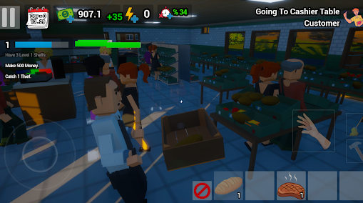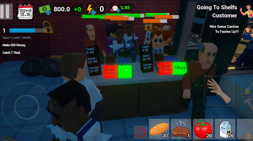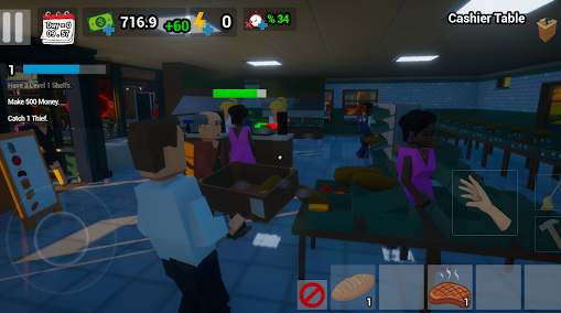 2、不断的解锁升级更多内容,并拓展你的超市规模,增加更多货架和商品种类,让顾客有更多选择。