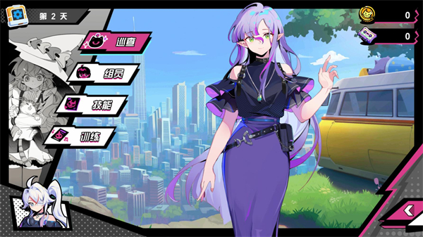 5、在主页面点击巡查可以开始剧情模式,点击组员、技能、训练可以培养你的角色。