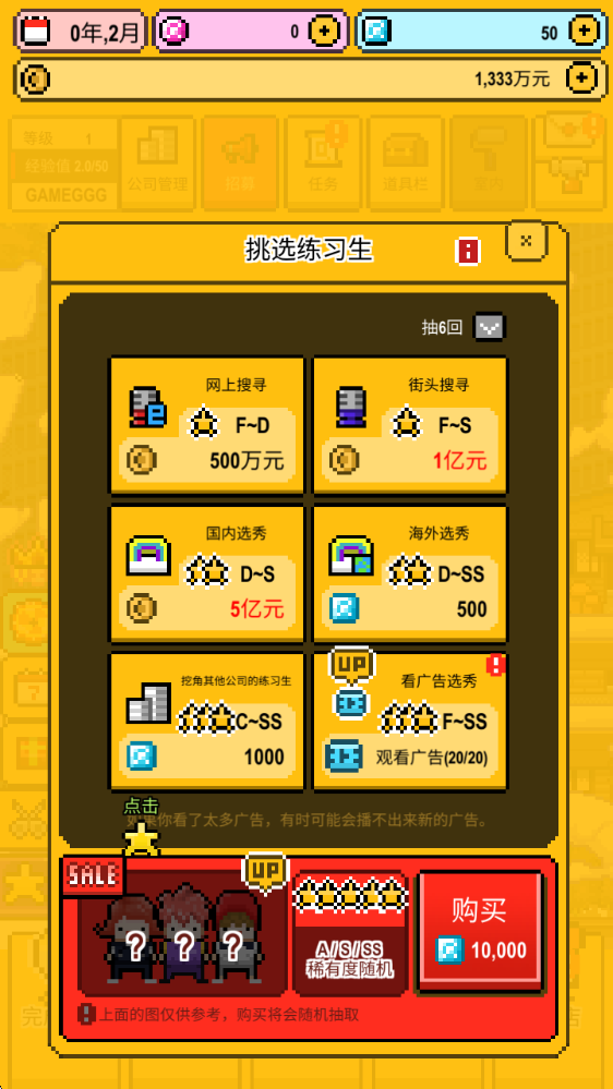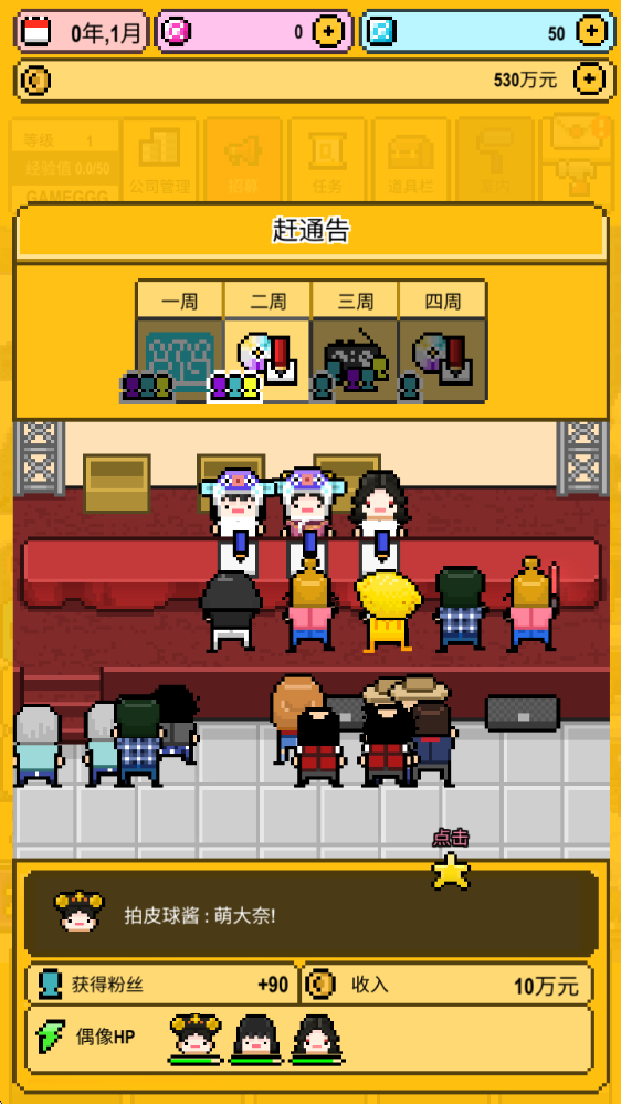 1、我们将会从零开始打造自己的偶像团体,首先招募新的练习生。