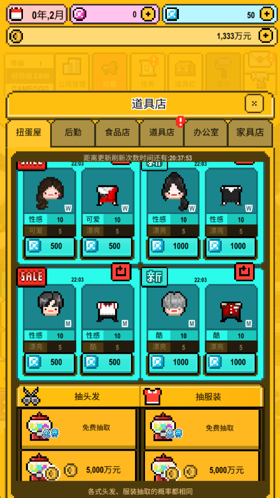 5、在道具店中可以购买各种道具、服装。