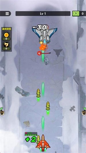 3、开始战斗后飞机会自动发射不同的子弹进行攻击,玩家要做的就是滑动屏幕控制飞机移动。