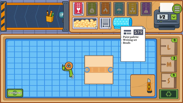 3、点击之后左上方会有物品通过传送带运过来,选择合适的物品以及箱子将其打包好。