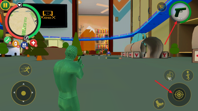 2、点击右上角的武器即可切换,瞄准即可射击。
