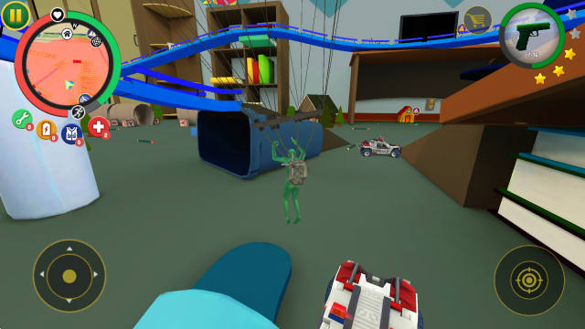 装备各种枪支、坦克、飞机和其他玩具武器。 每个项目不仅可以提高你的战斗能力,还为探索和与游戏世界互动开辟了新的可能性。 驾驶直升机在城市上空飞行,驾驶坦克穿过封锁线,或者与敌机进行空战。