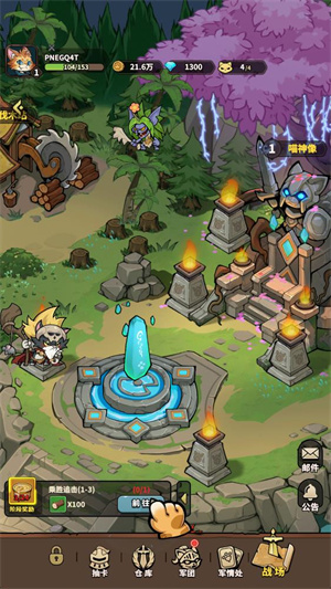 猫咪主题的卡牌式兵种养成:核心收集与养成乐趣。拥有大量造型、种族、技能各异的猫咪士兵卡牌。通过召唤、升级、升星等方式培养你的主力“喵将”,组建独一无二的“喵阵”。