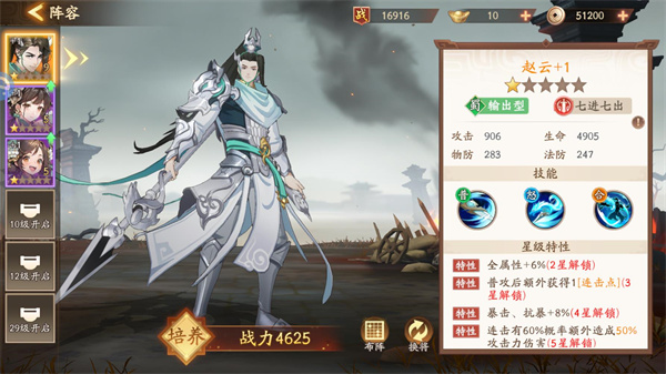 4、在主界面点击阵容可以培养你的武将,你可以选择升级或者进行突破。