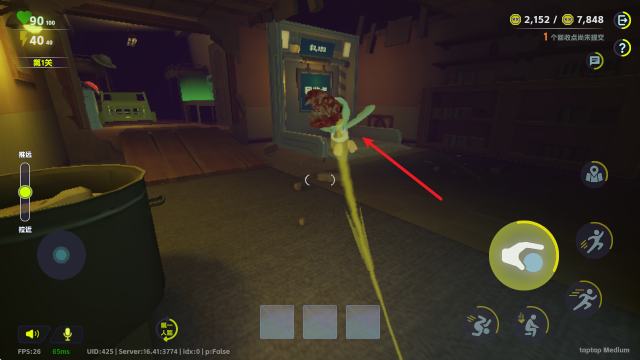 1、进入游戏后,左侧的摇杆控制任务进行移动。