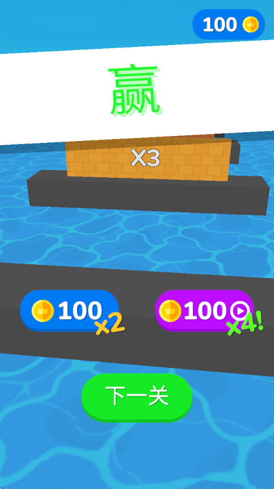 4、顺利来到终点后,根据拥有的宝石数量来击碎墙,从而得到对应的奖励。