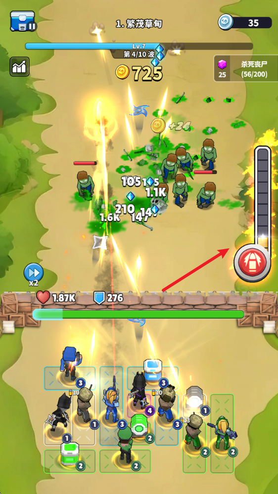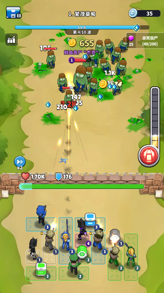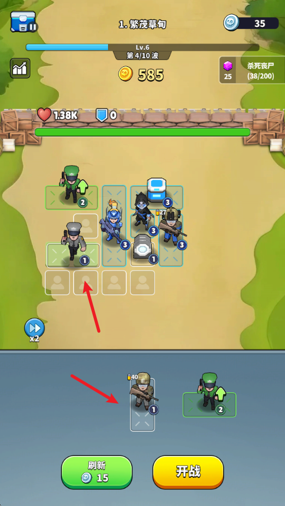 面对不同类型的丧尸潮,玩家需灵活布置多样化的士兵(如近战、远程、范围攻击等),并根据战场形势调整站位与策略。