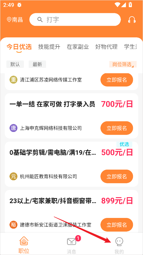 1、今日优选功能会给用户推荐今天最适合你的工作,还有很多是动动手指就能做完的线上工作,非常省事。