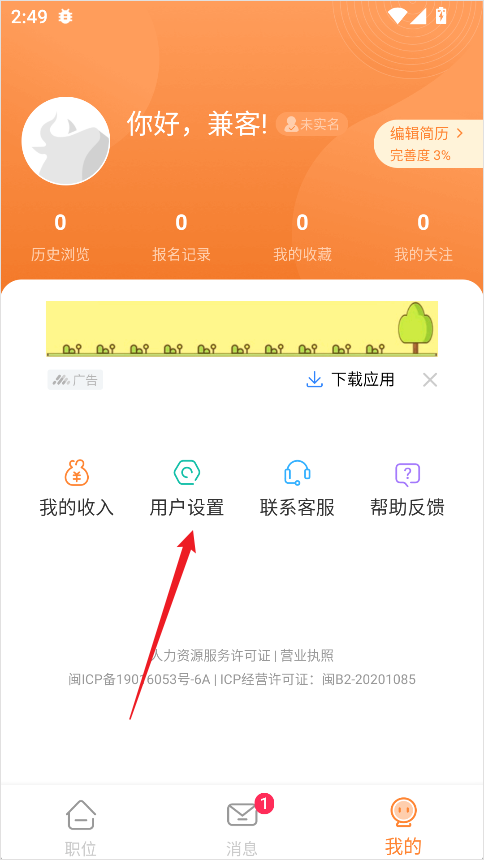 1、打开小牛兼职,点击右下角【我的】进入个人中心;