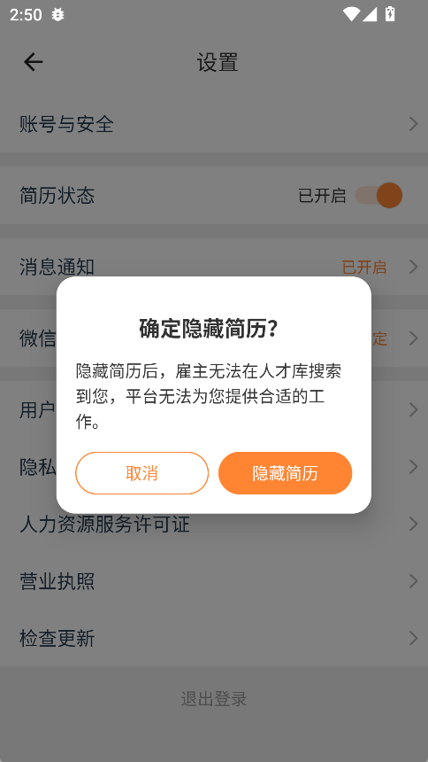 4、最后点击【确认隐藏】,即可成功隐藏你的简历信息。