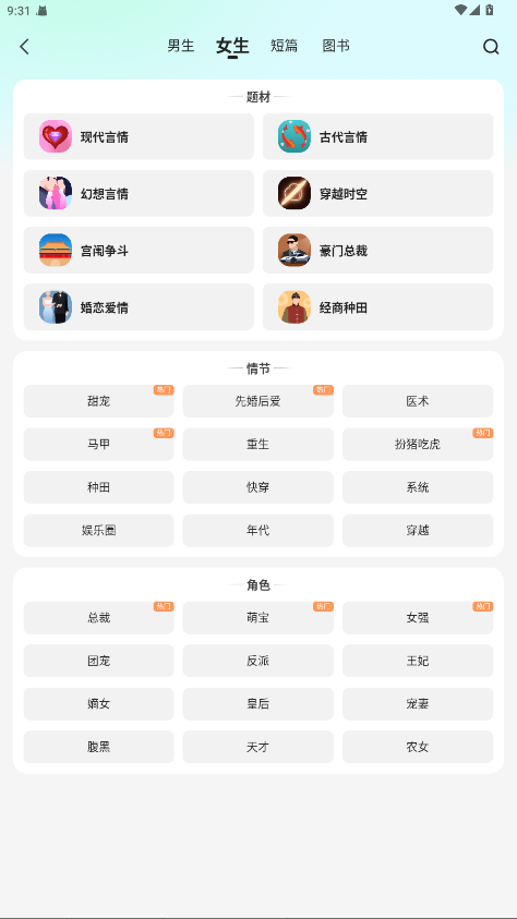 3.通过题材分类(都市、言情、玄幻、悬疑等)筛选喜欢的小说。