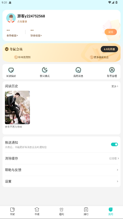 8.查看阅读历史、管理书架、调整账号与应用设置。