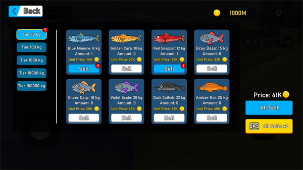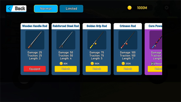 鱼竿升级与成长循环:出售鱼类获得金币,用于解锁更高级鱼竿,提升钓鱼效率并挑战更稀有鱼类。