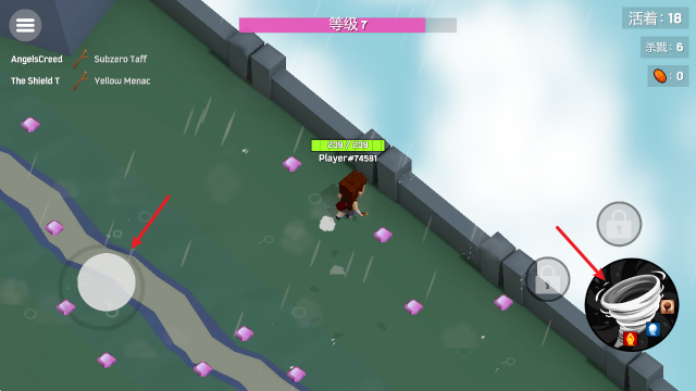 1、关卡中拖动左侧摇杆进行移动,点击右侧即可发动魔法攻击。
