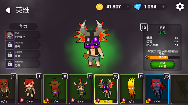 3、解锁新英雄后即可在界面中自由更换,还能进行升级。