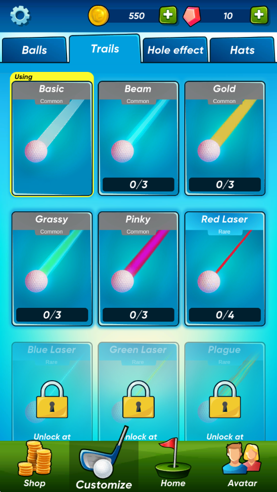 个性化装饰系统:可解锁并搭配高尔夫球皮肤、击球轨迹特效及球洞外观,彰显个人风格。
