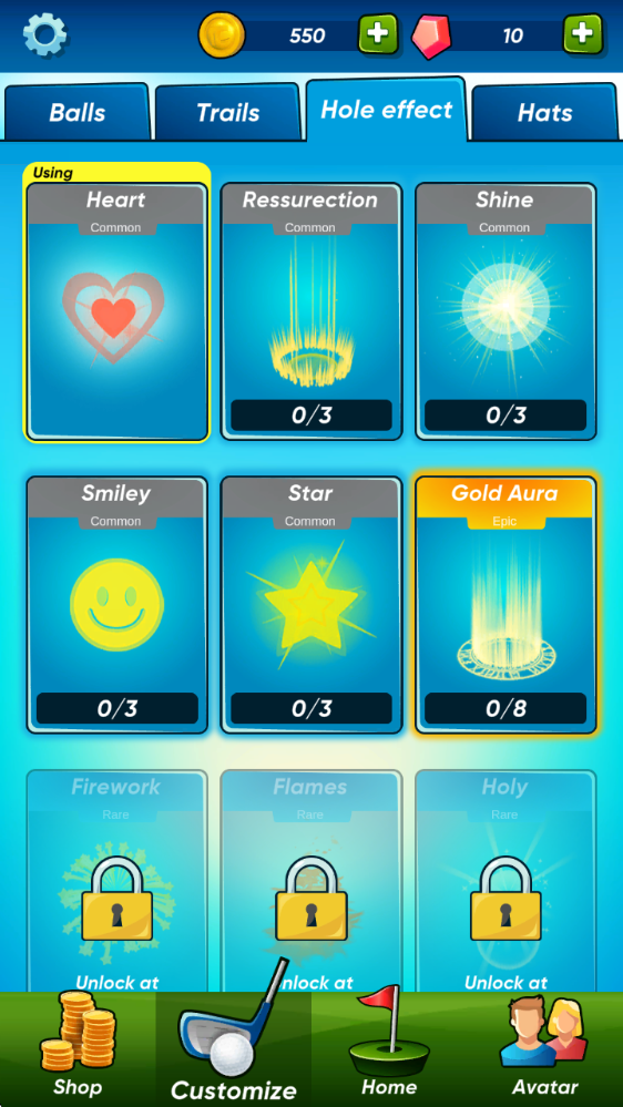 3、除了高尔夫球皮肤外,还有各种特效哦。