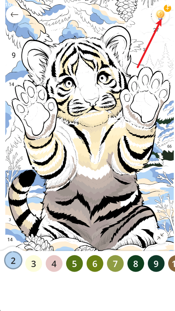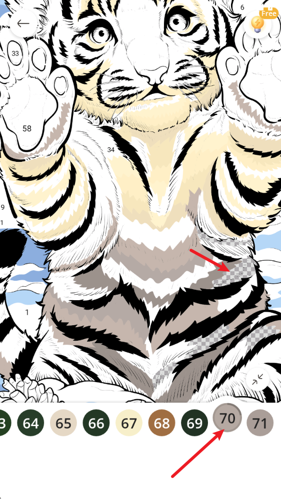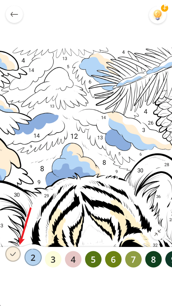 4、点击下方的数字标明的颜色,图中就会出现对应的区域,点击即可涂色。