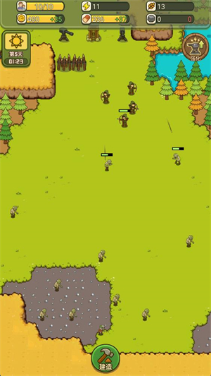 4、在白天是没有尸潮的,玩家可以外出消灭丧尸来扩张自己的村庄。