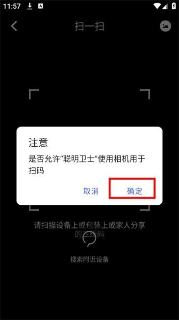 5、授予相机权限后使用app扫描设备上或包装上或是他人分享的二维码,识别成功后即可进行连接