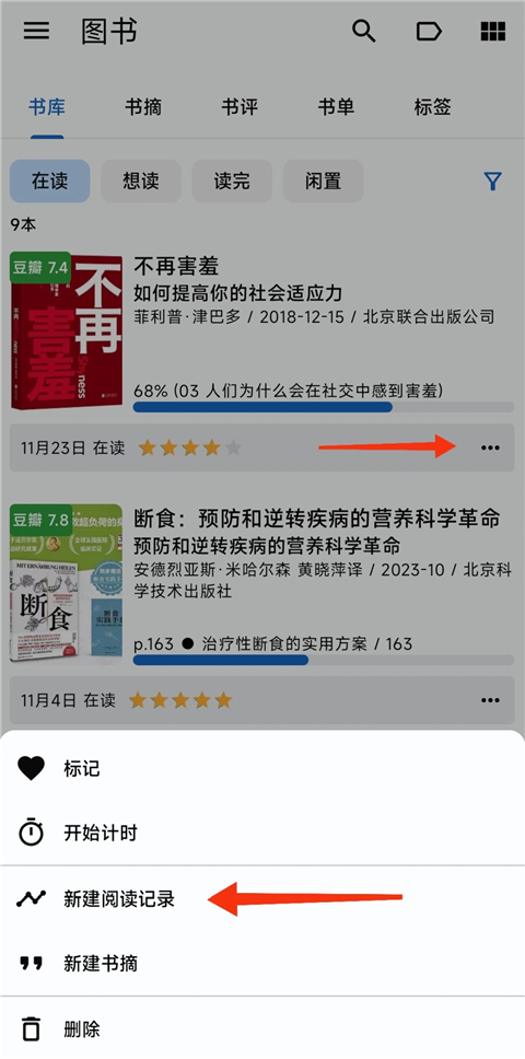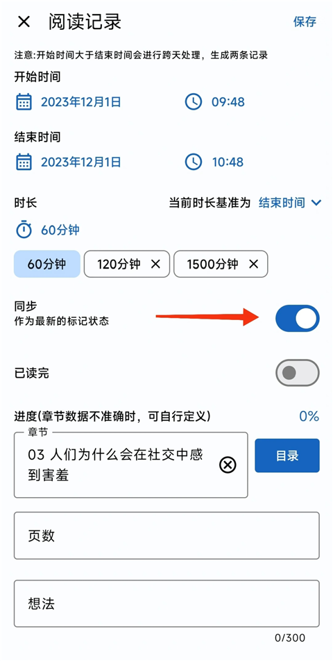 3、如果想要标记时间是某个特定的时间,比如2022-12-01,那么可以通过新增【阅读记录】来完成。