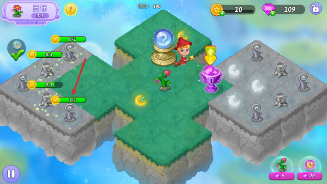 3、每一关都有着关卡目标,通过合成获得月亮精华即可解锁被封印的物品。