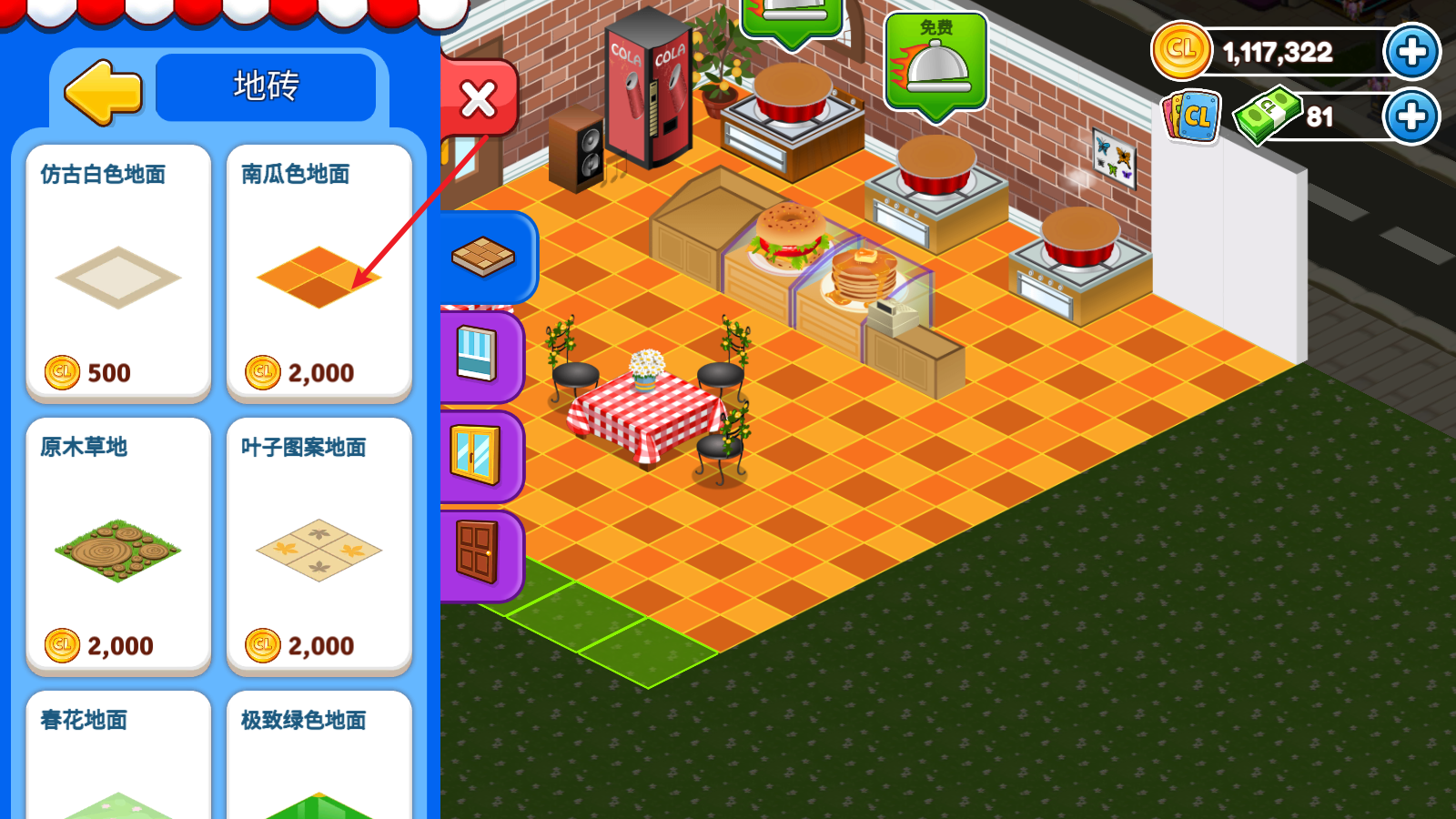 2、进入之后可以选择不同的栏目进行装饰,例如这里就是选择了特殊的地板。